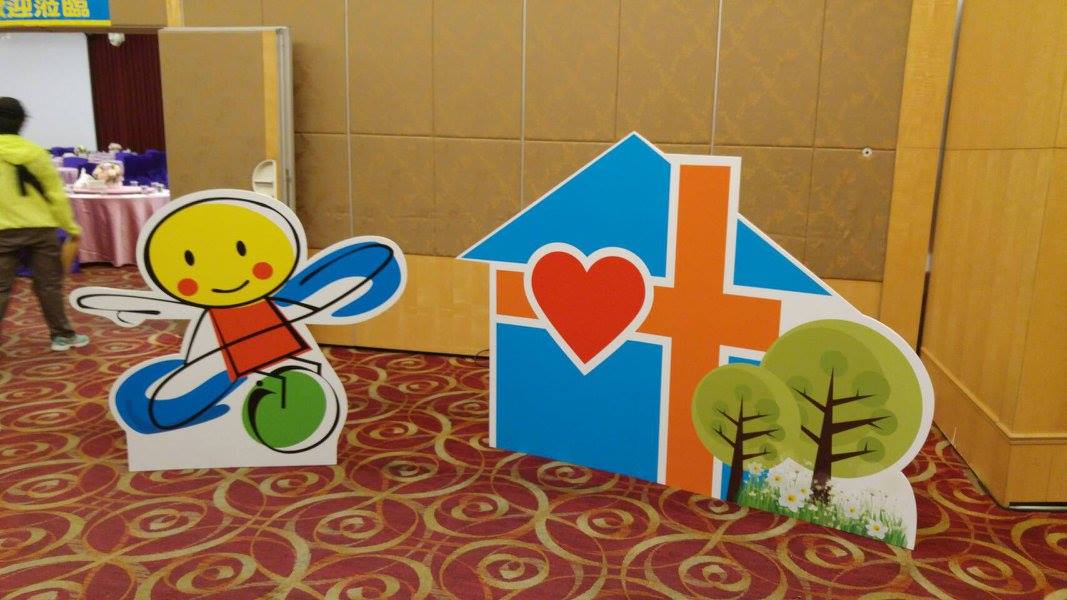 活動的主要視覺以黃色為底色,舞台掛布以及報到處的背板皆以簡單的背景,加上造型的字體,讓掛布及背板簡約中帶點不一樣的設計感!!!充滿童趣的造型背板讓會場氣氛顯得溫馨又可愛~